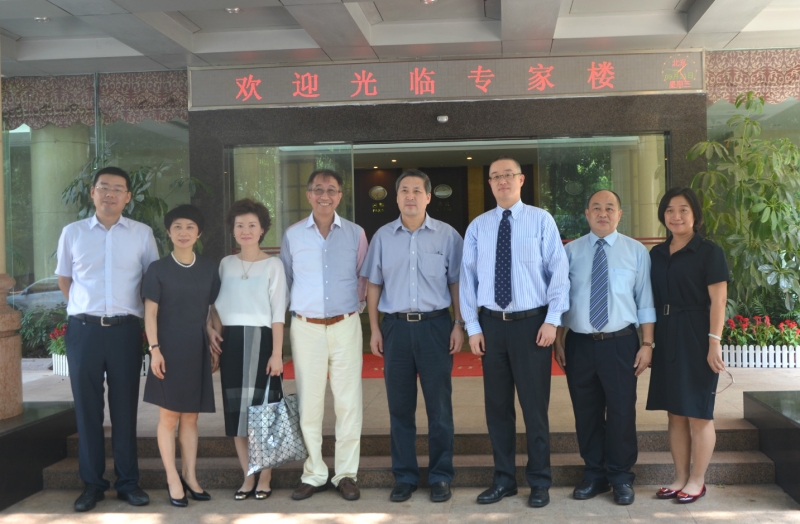 胡军校长与王凯彦(右三)、邢福忠(右二)及高世英(左四)、郁蕾(左三)伉俪合影