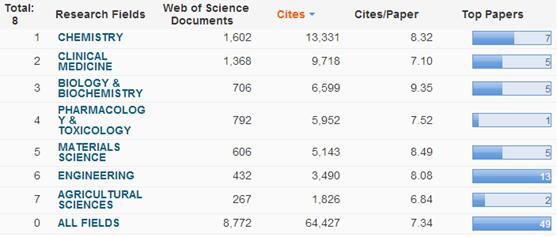数据显示,我校近十一年来共发表ESI论文8772篇,总被引64427次,其中高被引论文49篇,总体实力在进入ESI全球排名前1%的5460所全球科研机构中位列第1257位。