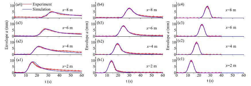 (无发散波场的实现:左一、左二分别为强色散和弱色散波包的演化行为;左三为无色散波场的演化行为)