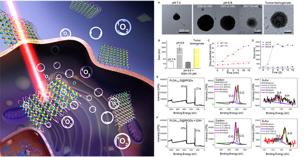 1、具有酸响应能力和生物响应性能力的纳米体系PLGA-SS-D@BPQDs的设计及其作用原理。