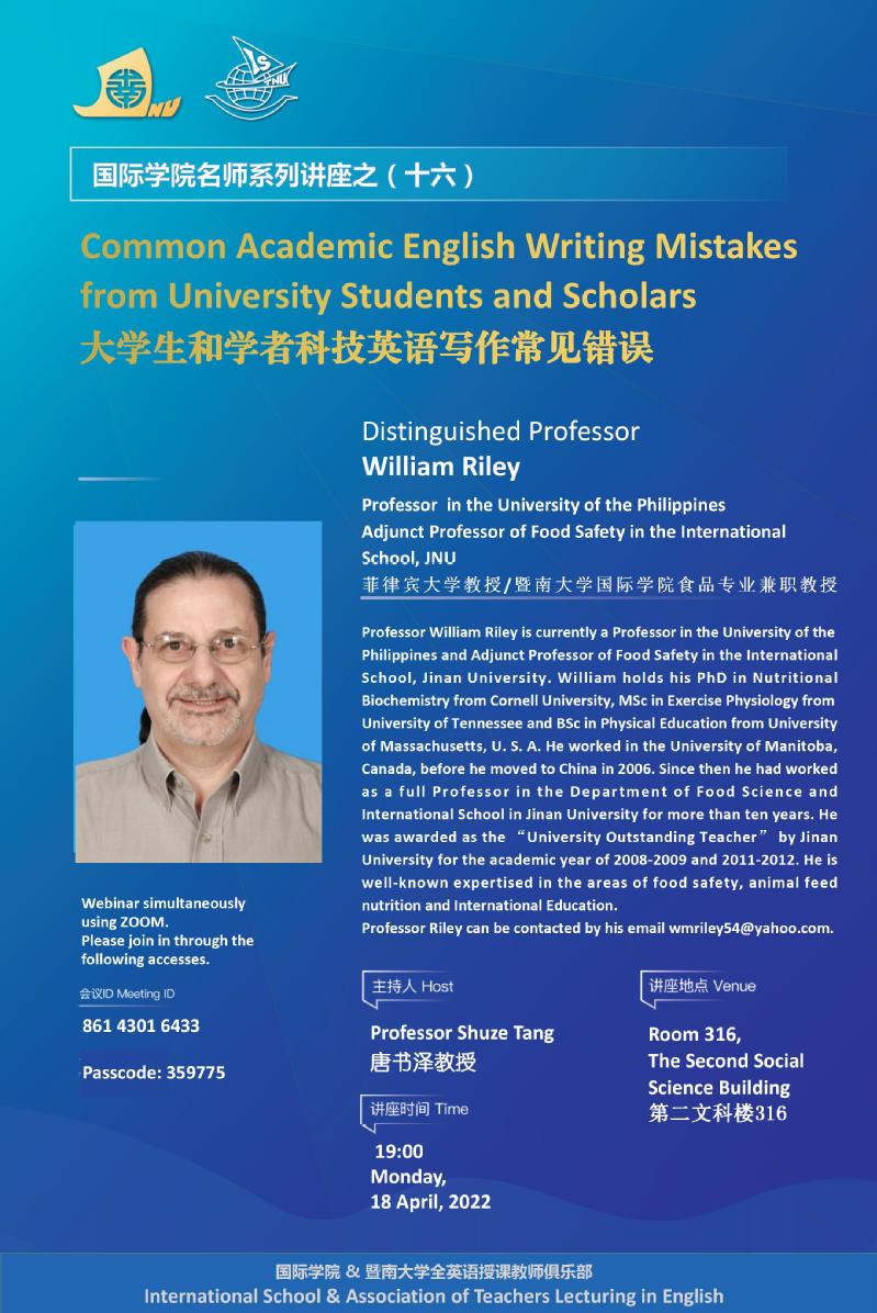 国际学院名师系列讲座之(十六):大学生和学者科技英语写作常见错误