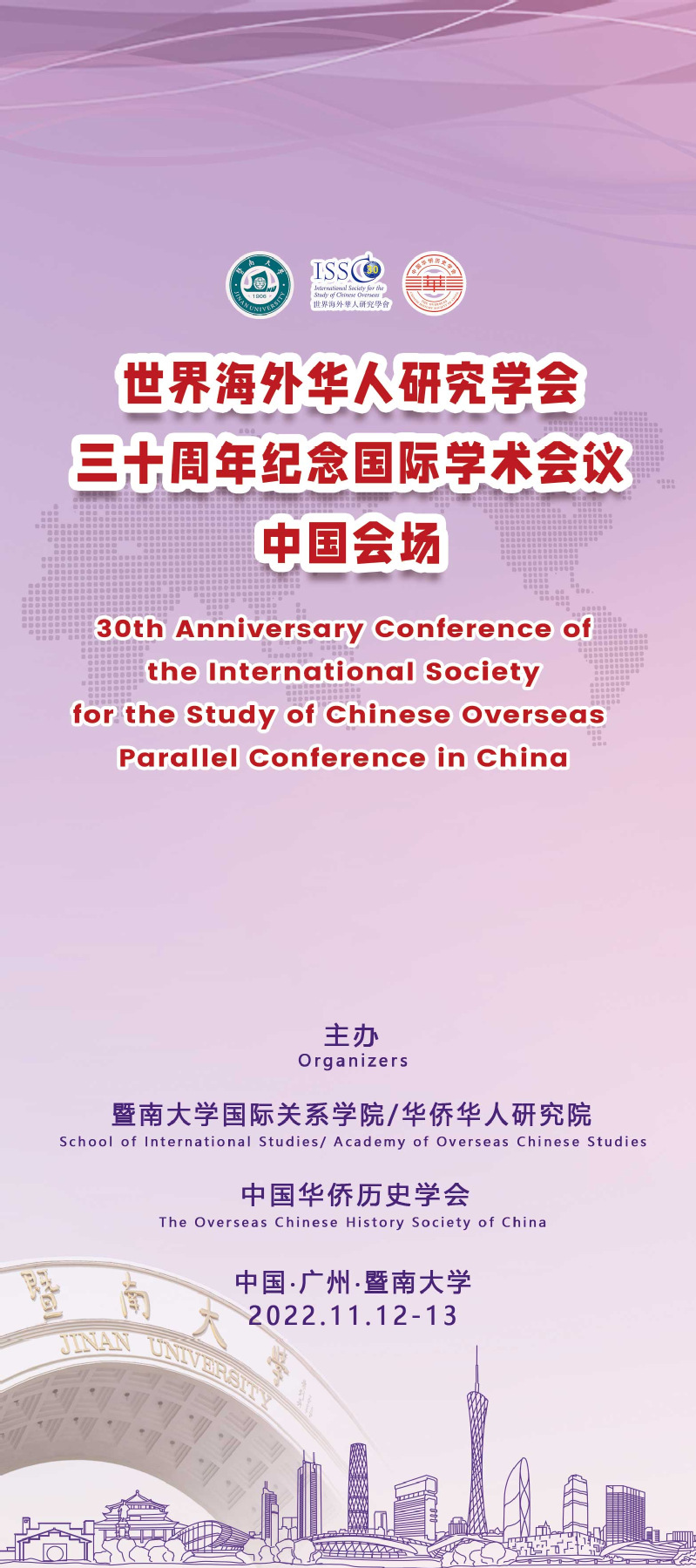 2022年,世界海外华人研究学会再次与私密直播结缘,将学会三十周年纪念会议的中国平行论坛设立在我校,由我校国际关系学院/华侨华人研究院和中国华侨历史学会联合主办。会议设有6个平行论坛、共计30个小组进行主题发言。会议信息如下: