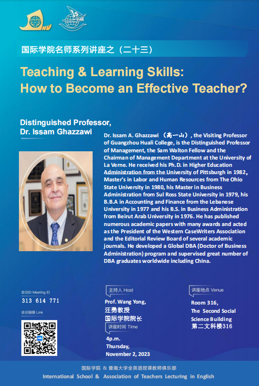 国际学院名师系列讲座之(二十三):Teaching & Learning Skills: How to Become an Effective Teacher?