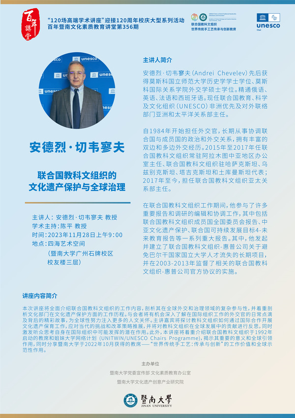 百年私密直播文化素质教育讲堂第356期:倾听文化遗产的“心声”——联合国教科文组织的文化遗产保护与全球治理