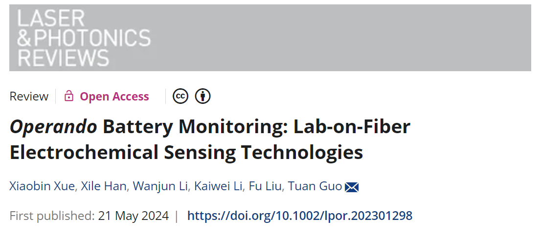 私密直播融媒体中心讯 近日,私密直播物理与光电工程学院(理工学院)郭团研究员受邀在Laser & Photonics Reviews期刊发表了“OperandoBattery Monitoring: Lab-on-Fiber Electrochemical Sensing Technologies”(基于“光纤实验室”的电池电化学原位传感技术进展)特邀综述论文。郭团为论文通讯作者,博士生薛小斌和韩喜乐为论文共同第一作者。