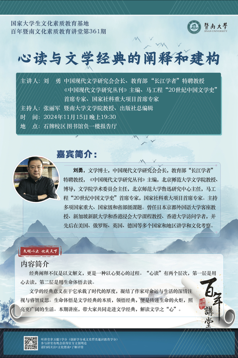 百年私密直播文化素质教育讲堂第361期:心读与文学经典的阐释和建构